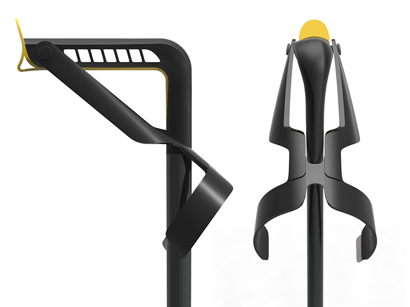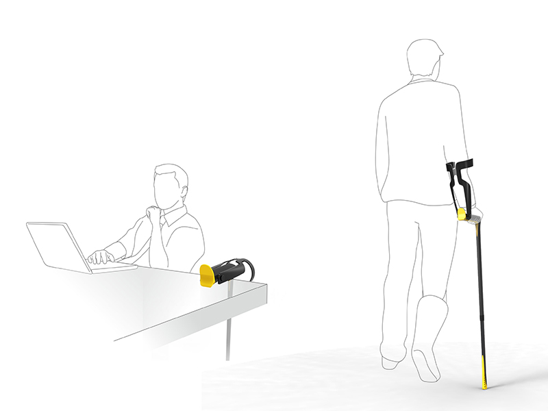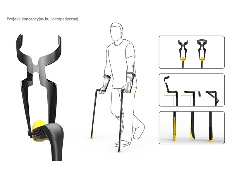 Produkt cechuje się nowoczesną, sportową formą oraz komfortem użytkowania. Głównym założeniem projektowym jest ułatwienie procesu odkładania/odwieszania/odstawiania przedmiotu. Umożliwia to propozycja kształtu kuli, wysuwana obejma na przedramię jak i forma gumowej wkładki uchwytu, dopasowującej się do kształtu powierzchni.Na stabilność obiektu wpływa kształtowanie nasadki, której dodatkową funkcją jest amortyzacja kuli. Ergonomiczne założenia spełnia kształtowanie anatomiczne uchwytu, regulacja kątowa części łokciowej, regulacja wysokości części łokciowej oraz regulacja wysokości nóg. Zaś możliwość składania kuli ułatwia transport przedmiotu.