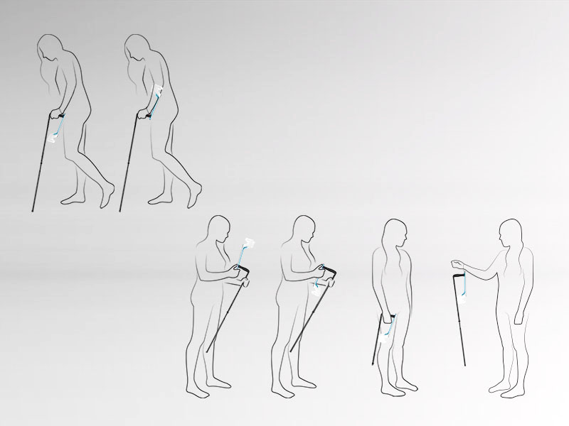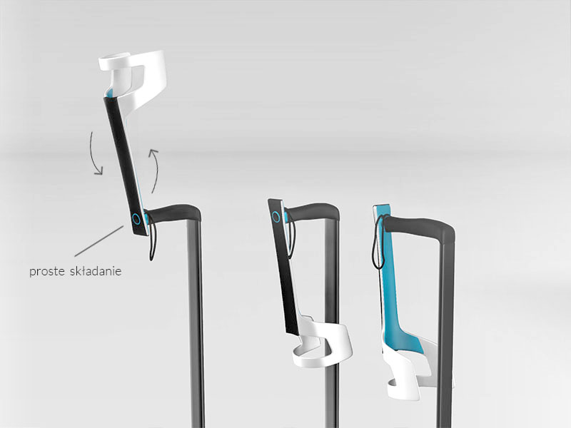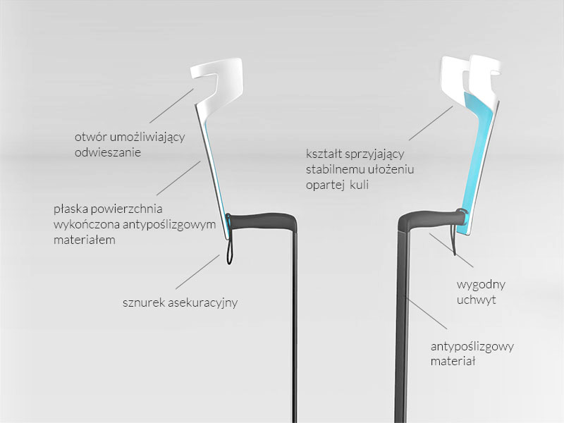 W procesie projektowania powstało wiele koncepcji oraz modeli prowadzących do wyboru najlepszego rozwiązania. Produkt cechuje się komfortem użytkowania, niemedyczną stylistyką i funkcjonalnością. Ze względu na oryginalne podejście do składania kuli, oraz formy obejmy na przedramię i jej trzonu, łatwe jest nie tylko jej użytkowanie (odkładanie, odwieszanie), ale też transport.