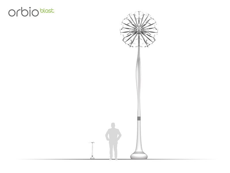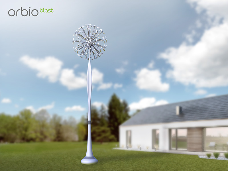 Orbio Blast to przydomowa elektrownia wiatrowa, która do produkcji energii wykorzystuje drgania elementów na połączeniach elastycznych. Jej forma wynika z inspiracji naturą. Struktura dmuchawca pozwala na wykorzystanie wiatru o różnej prędkości, wiejącego w różnych kierunkach. Najmniejsze moduły w kształcie liści mają wykorzystywać wiatr o najmniejszej prędkości. Wraz z jej wzrostem uaktywniają kolejno „gałęzie” i „łodygę” czyli maszt. Dzięki tym rozwiązaniom elektrownia może sprawdzić się w terenach o gęstej zabudowie gdzie tradycyjne turbiny są nieopłacalne. W przypadku braku odpowiedniej przestrzeni alternatywę stanowią pojedyncze moduły mocowane na dachu budynku.