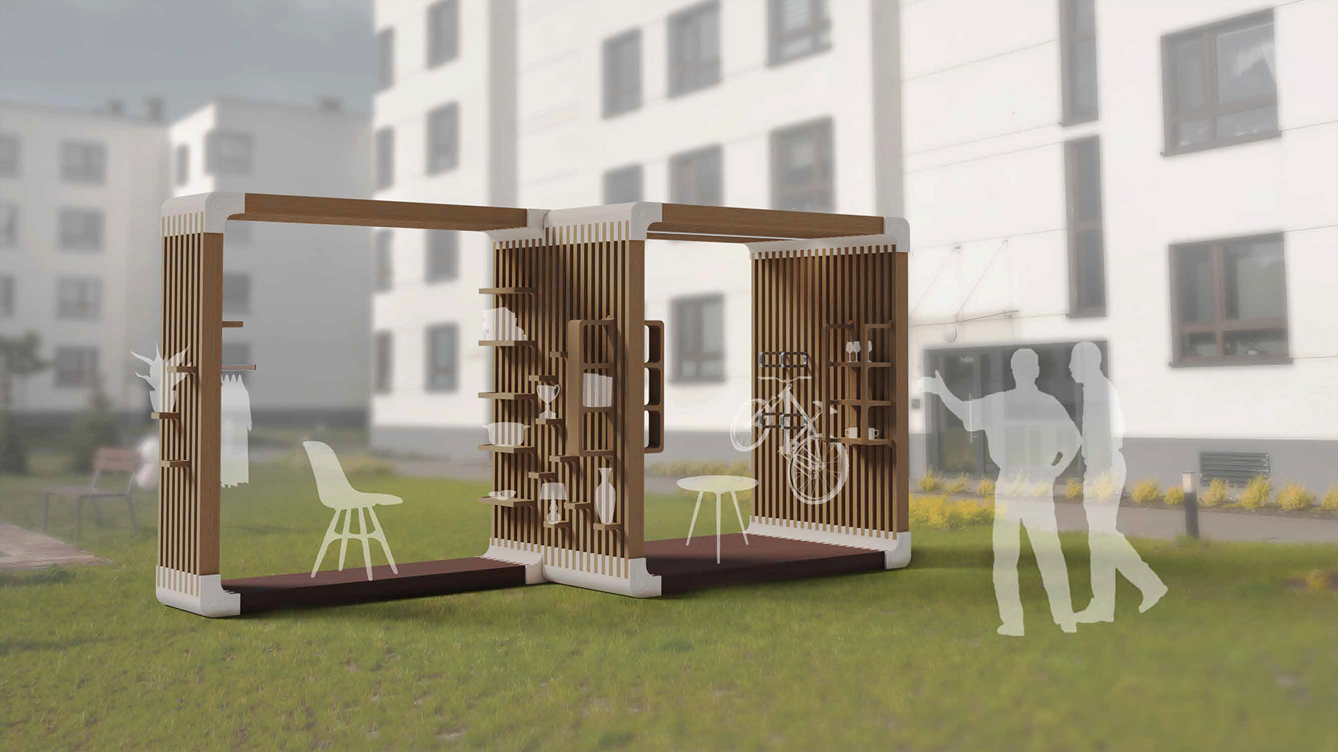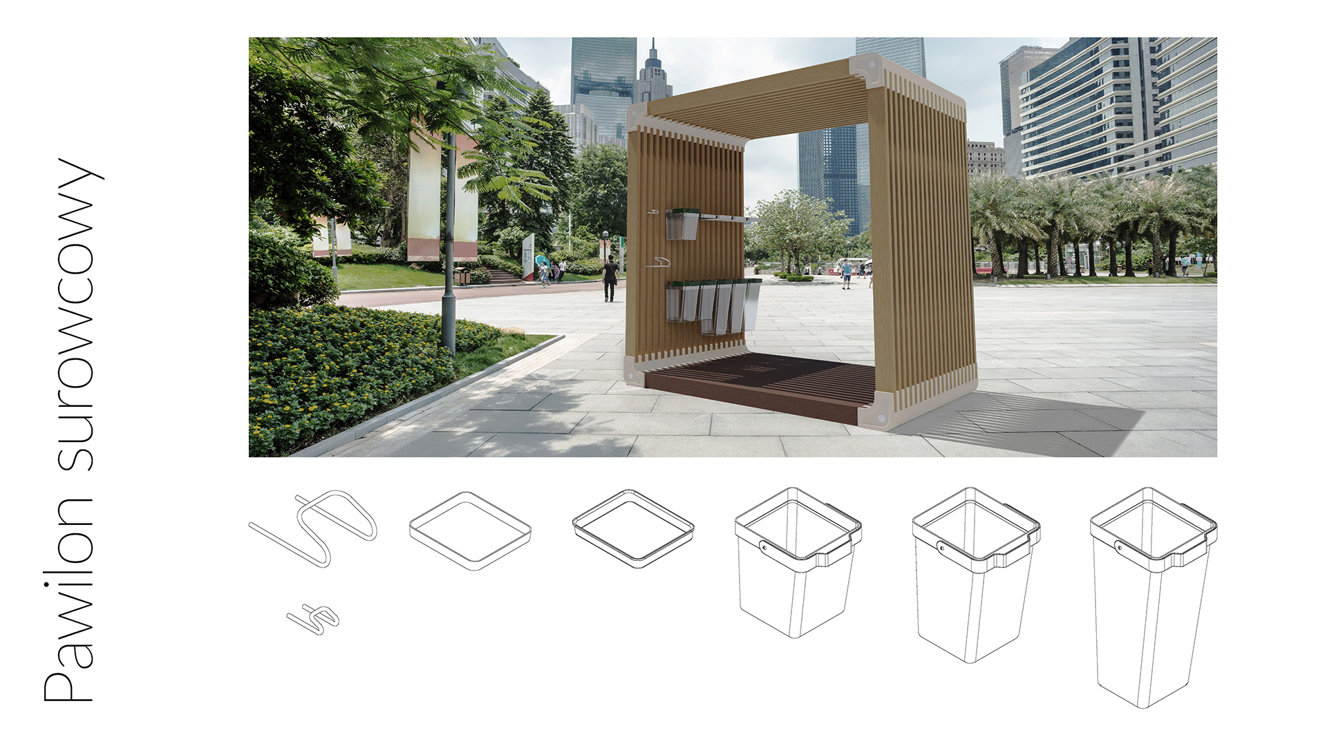 Projekt pawilonu cyrkularnego, będącym miejscem wymiany surowców i materiałów w lokalnej społeczności. Jest to otwarte miejsce dla mieszkańców, gdzie można ogłosić zbiórkę odpadów, które zostaną spożytkowane przez ogłaszającego. Na projekt składa się pawilon, który można rozbudowywać do potrzeb miejsca, wraz z system półek, haczyków i koszy, dzięki którym mieszkańcy mogą gromadzić i przekazywać określone przedmioty. Ideą jest przedłużenie życia odpadów, które są dla jednej osoby już nieprzydatne , a dla kogoś innego wciąż mogą stanowić użytek: puszki, zakrętki, skrawki tkanin, butelki, słoiki, zakrętki, makulatura, suchy chleb dla zwierząt, łupinki cebuli, skorupki po jajkach, kaucjonowane butelki, folia bąbelkowa, wypełniacz do przesyłek, stare czasopisma, opakowania po jajkach, doniczki, zużyte piłeczki tenisowe, kable, strzępki tkanin i tym podobne