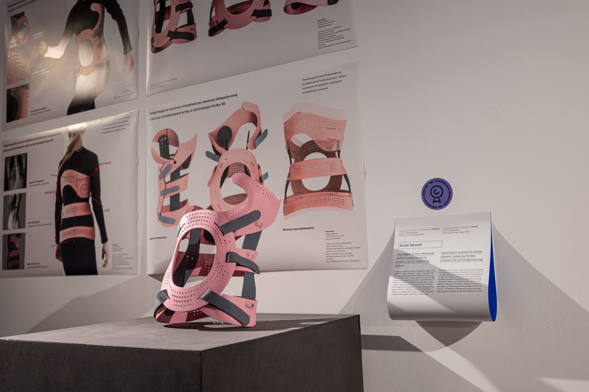 Wyróżnienie honorowe za projekt „Wspomaganie leczenia młodzieńczej skoliozy idiopatycznej poprzez kształtowanie ortez w technologii druku 3D” w konkursie Design 32.