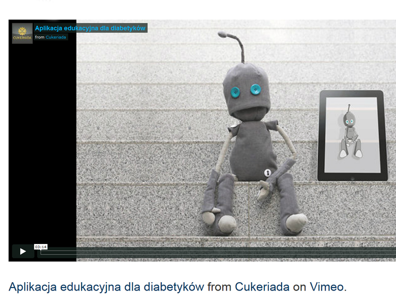 Projekt Aleksandry Orchowskiej to edukacyjna gra dla dzieci w wieku 5-9 lat dotkniętych cukrzycą typu 1. Gra w postaci mobilnej aplikacji i pluszowego „robocika" wprowadza dziecko w zagadnienia związane z cukrzycą - pokazuje objawy choroby oraz zasady samoopieki. Łączy w sobie elementy gry przygodowej polegającej na eksplorowaniu wirtualnego świata i gry symulacyjnej. Pluszowa zabawka jest materialnym wcieleniem głównego bohatera i ma uświadamiać fizyczną realność choroby.